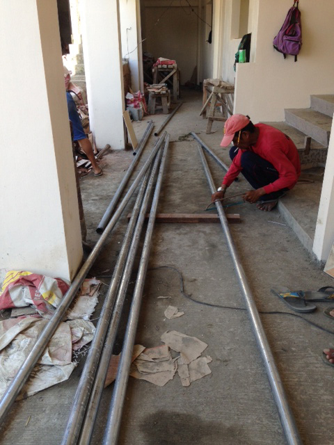 - 接続。スタッフルームのトイレのパイプもついでに準備。