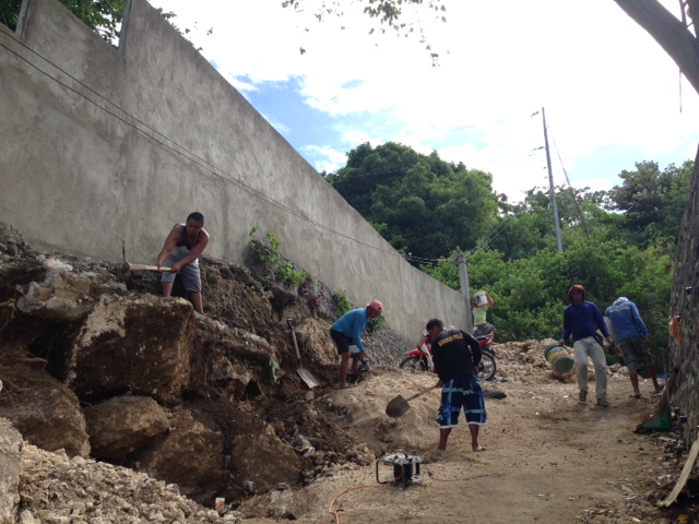 - 駐車場からの降り口。まだ撤去が必要な岩あり。