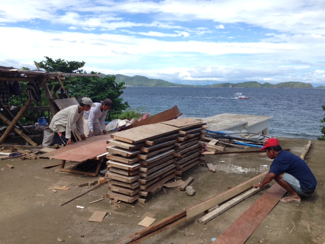 七夕飾りをつけて。インターナショナルの幼稚園だと七夕の行事がないので、アニラオでやりました。本当の笹って、切っちゃうと葉っぱがしなびるの目に見えて早いですね。