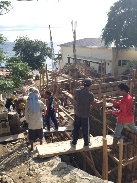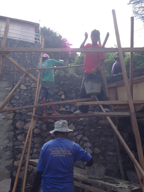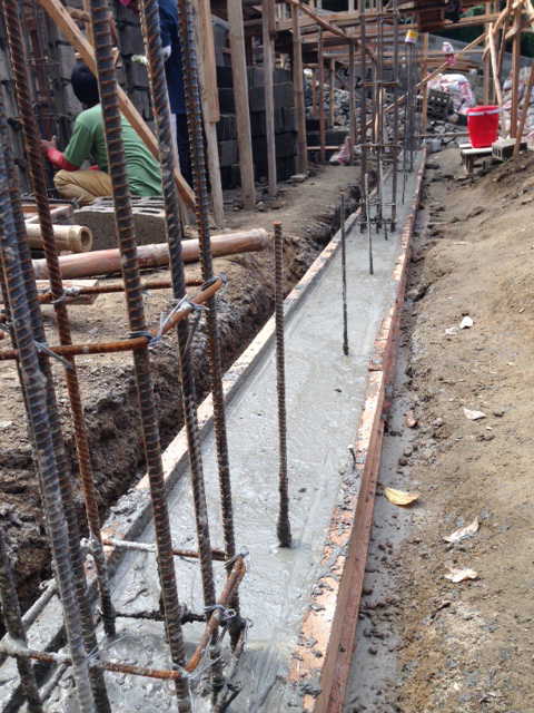 - スタンダード棟の柱。コンクリはバケツリレーで運びます。