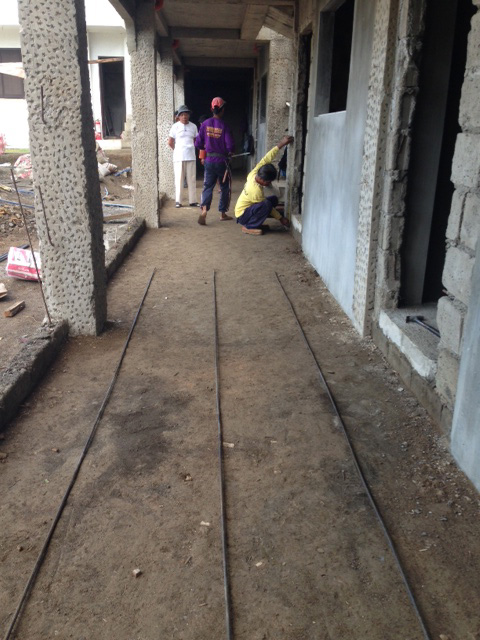 - スタンダード棟、1階通路、鉄筋しく準備。