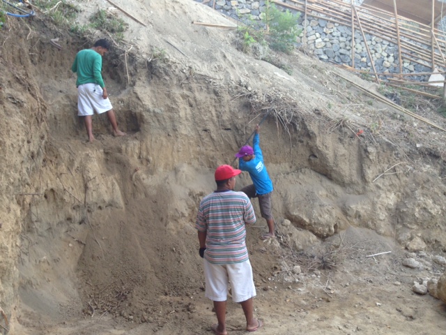 同日、駐車場と下の敷地の間にある空き地に将来建てるかもしれない建物のための下水配管設置。