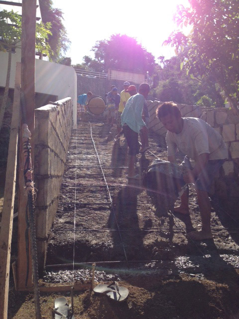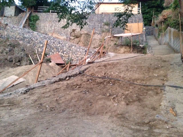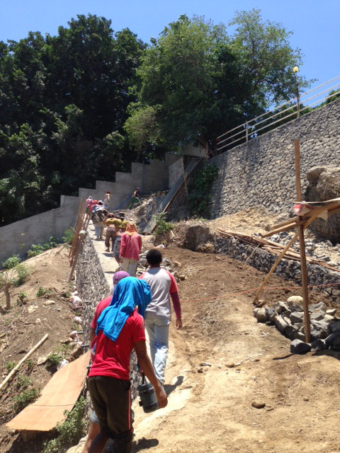 5月26日、リゾート中央の巾の広い階段をスロープにする工事開始。