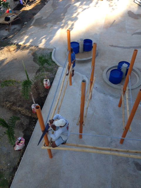5月19日、将来ブンガビラ(ブーゲンビリアのこと)と名前を変えるシービューの部屋のベランダにブーゲンビリアを植えるための植木棚設置。