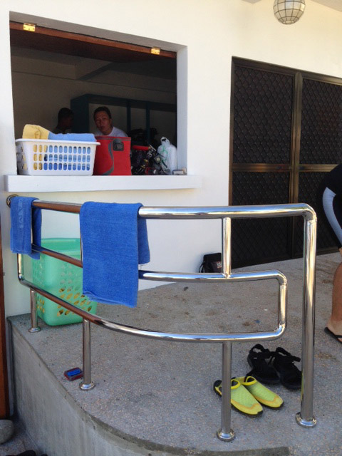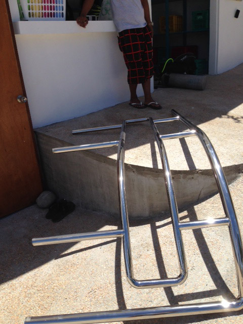 同日、注文していたステンレスの柵が届く。ステンレスって高いです。アルミのドアも。やっとダイブショップに鍵がかかるようになりました。