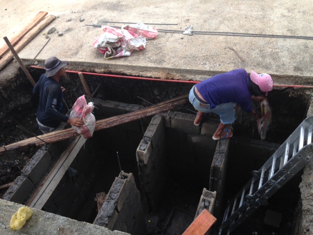 - 浄化槽。ブロック積み中。
