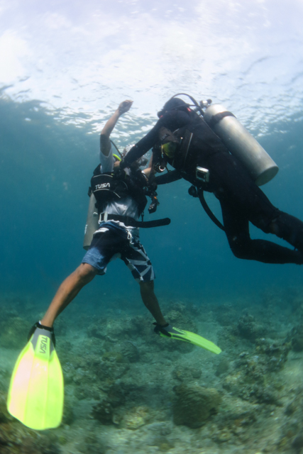 If no electricity, no office work, lets dive. Water temp is 29C.