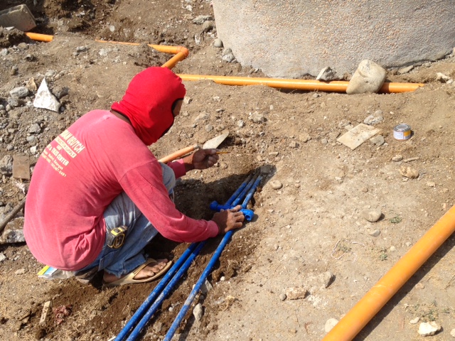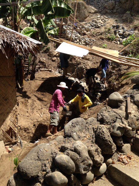 急ピッチで進めているダイブショップ回り、奥さんデザインの器材洗い場、こんなかんじです。これに半分に切ったポリのドラム缶を取り付けます。