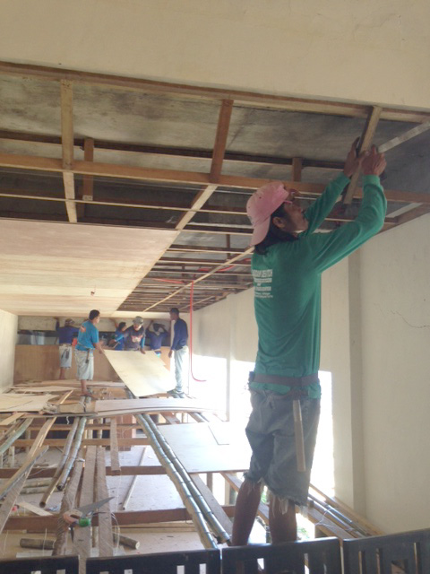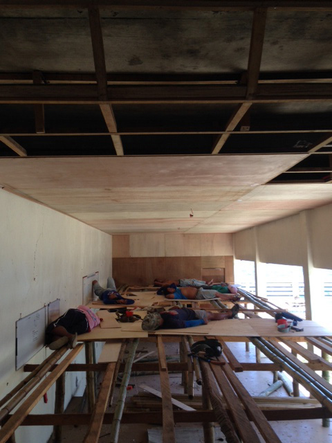- 拡張ダイニングの仮天井設置。