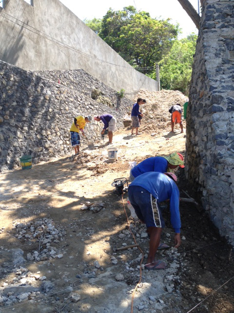 - 駐車場からの降り口。ならし完了で、明日コンクリ打ちます。