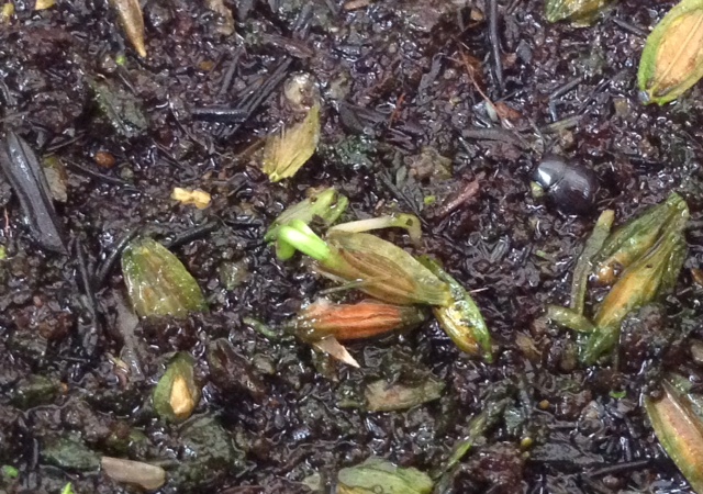 2014年12月13日にアニラオで蒔いた、八丈島の明日葉の種、20日目の2015年1月1日に発芽しました。