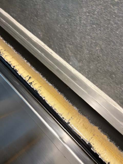 最後にちょっとしたフィリピン小ネタ。とある連絡通路のエスカレーターに乗ったとき、手すりの内側がなぜか半分だけ剥がれているという珍現象に遭遇。