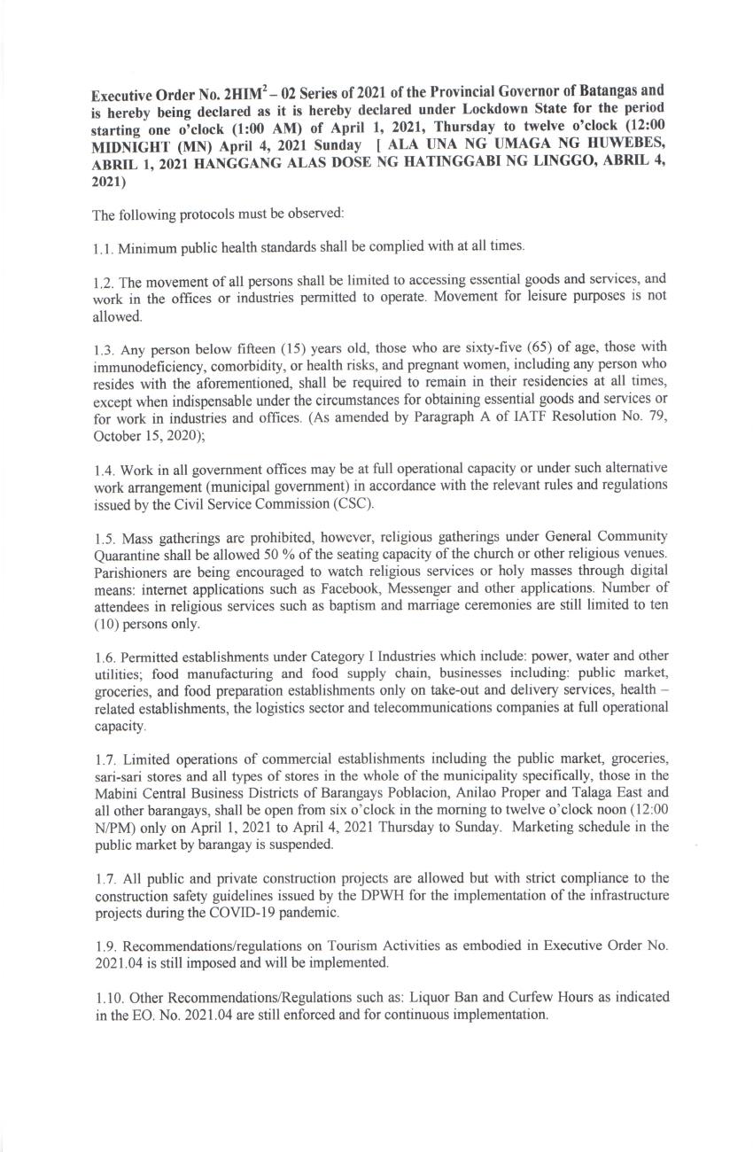 29日の夜に政府から発表されたプランによると、4月1日からのアニラオを含むバタンガス州はGCQ(一般的なコミュニティ隔離措置)に引き続き設定されるそうです。マニラ首都圏他からの観光を目的とした移動を制限している措置が、予定通り4月4日におわって、マビニの町が妙な追加措置をとらなければ、4月9日〜11日の3連休の営業再開はできそうです。