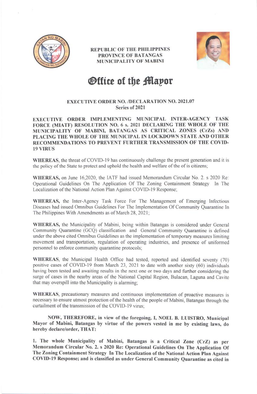 そのマビニ町、明日4月1日〜4日の間、ほぼすべての人の町への出入りを禁止する措置を発表。マニラの日本人ダイバーさんがこられないのでお休みを頂いているマグダレナとは違って、嘘をついて入ってくるフィリピン人ゲストや、州内のローカル客を当てにして営業しているリゾートもいくつかあって、そのあたりも漏らさずコロナ予防をしたい措置のようです。