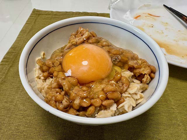 フィリピンで売っているものより、保水力があるような気がします。生卵に納豆と、幸せマシマシ。卵は火が通っていたほうが吸収が良いそうなので、生卵食のしづらいフィリピンでは目玉焼きでも載せようかと思っていたところなので、なお身体に良い予感。
