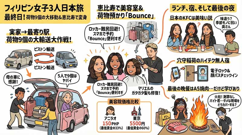 フィリピンスタッフ女子3人の日本旅、いよいよ最終日。今日のメインイベントは観光でもグルメでもなく、荷物を羽田空港近くへ移すこと。