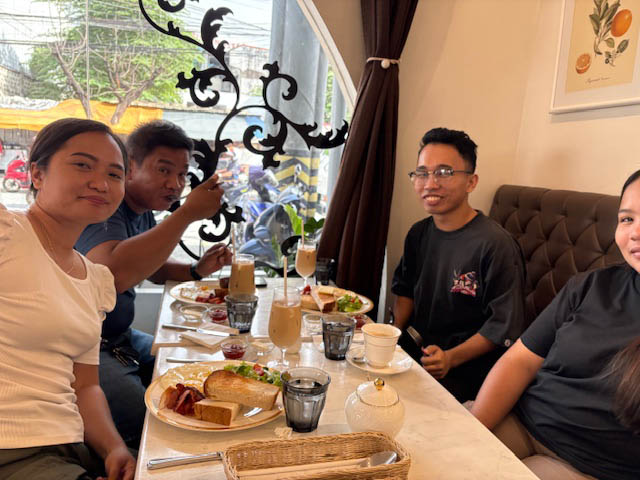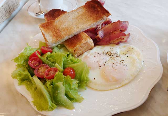みんなはブレックファーストセット。ここは日系で良い卵を使っているので、目玉焼きが半熟で出てきます。