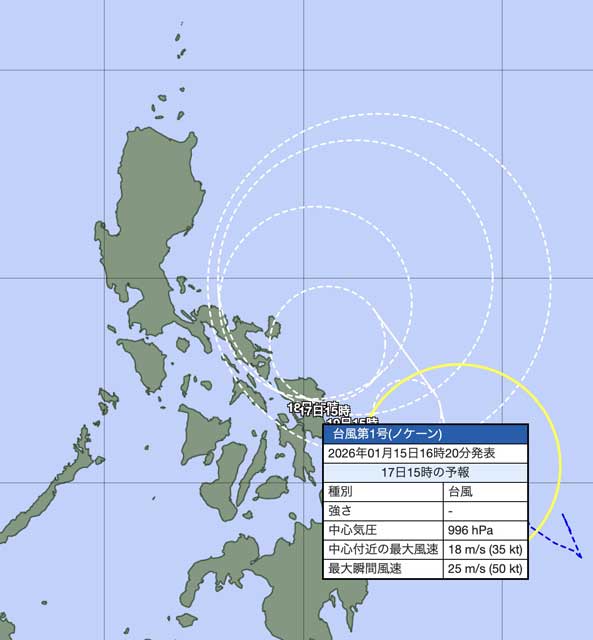 「なんで?」と思ったら、台風1号ができていたらしい。現在フィリピンの東の海上から西に向かって進行中。