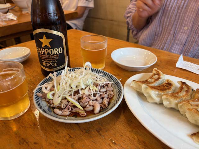 そのあとはすぐ隣の奥さんが小学校時代に住んでいた恵比寿へ。町中華「香湯ラーメンちょろり」で遅ランチ。ここに来ると、ついついラーメンの前におつまみで一杯、という流れになるのはいつものこと。