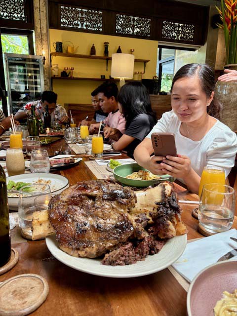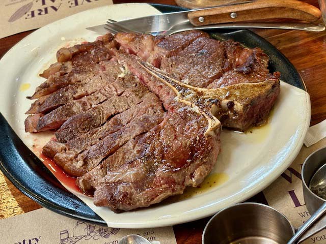今回の忘れないはステーキ。お店のメインは子牛の足のグリルだから、牛肉以外を各自注文するものと思っていたのが、まさかのジュンジュンほか日本でステーキを食べたメンバーがポーターハウスビーフステーキをオーダー。