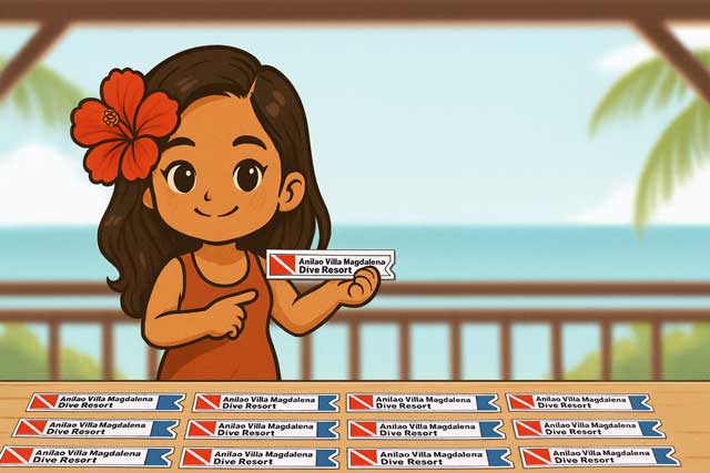 かくいう私も、ダイビングをフィリピンで始めたばかりの(23年前)、早速作ってダイビング器材以外にもファシリテーションに使う油性マーカーセットなどにも貼り付けて愛用していました。