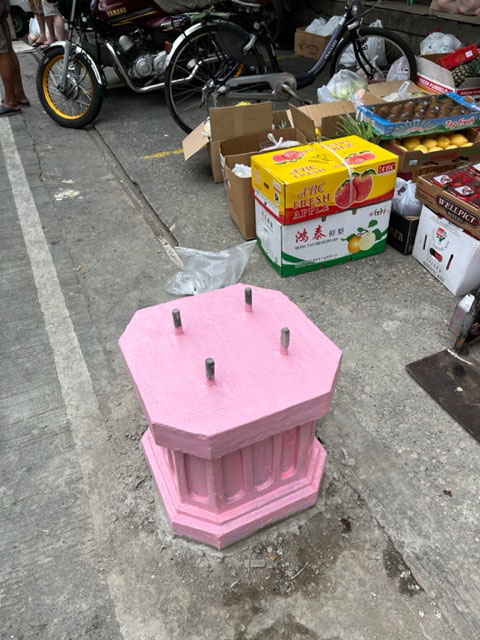 先週作っていた、柱の基礎、ピンクと緑に塗られていました。どんな柱が上につくんでしょうかね。