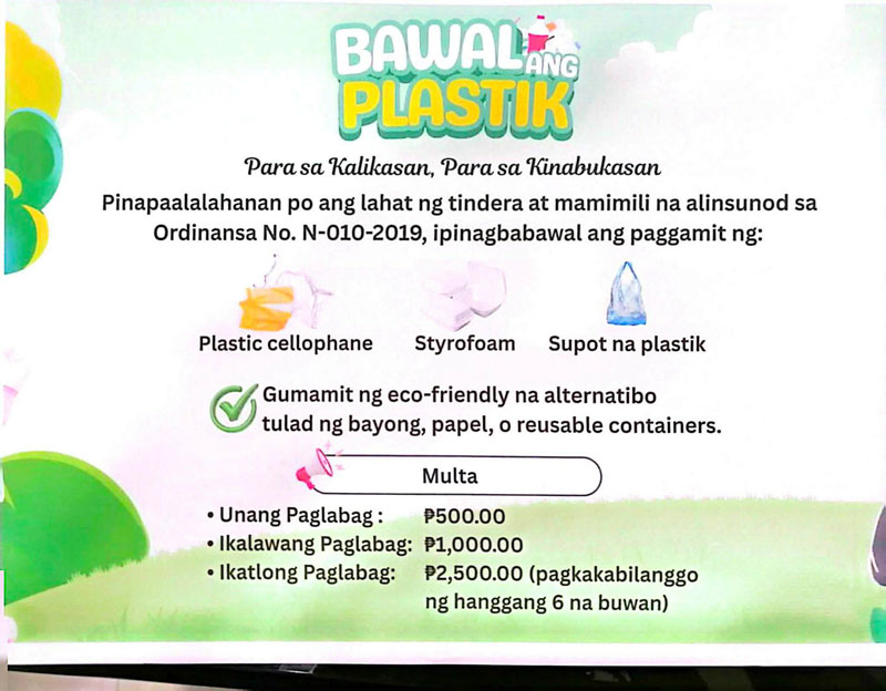 マビニでは、市場でビニール袋を使っちゃいけませんよ、という話らしいです。2019年の市の条例に基づいて、とのこと。
