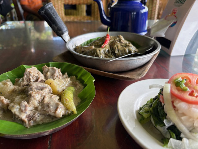 今回は夫婦二人なので、野菜を中心に注文しました。例えば「Laing(ライン)」。ビコール地方のそれとは少し違って、里芋の葉(ガビ)のボリュームがすごくて、これだけでも大満足(実際、残りはお持ち帰りに)。
