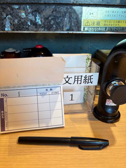 すし之助では、今流行りの注文用のタブレットなどはなく、手書きで注文票を記入するスタイル。カウンターの隣には外国人の母子が座っており、「どうやって漢字のメニューを注文したんだろう?」と思っていたら、息子さんが日本の学校に通っているようで、見事に漢字で注文を書いていました。