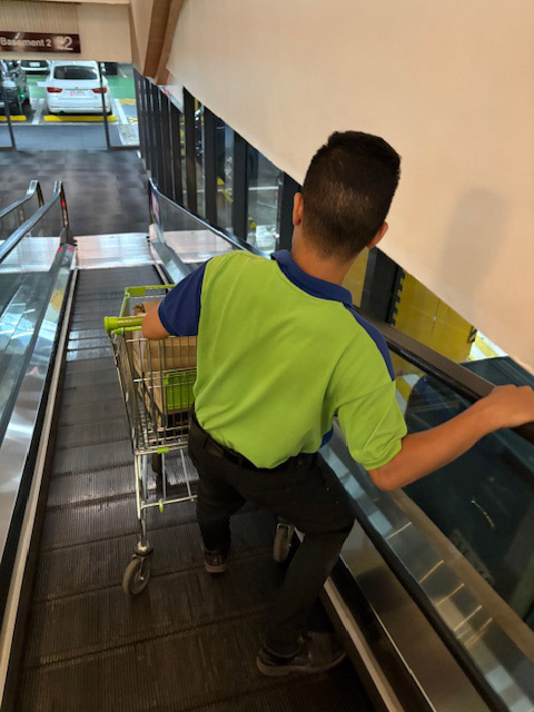 日本のCostcoやマニラのS&Rのカートは、こういう坂道エスカレーターで落ちていかないような写真の構造のカートになっているのですが、ここでは要注意でした。