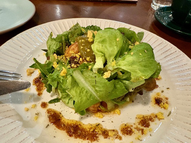 エビのサラダと、夫婦二人して気になっていた「ボンバ」ってやつ。あとは名物らしい、Josper oven(ジョスパーオーブン)で作ったリゾット。