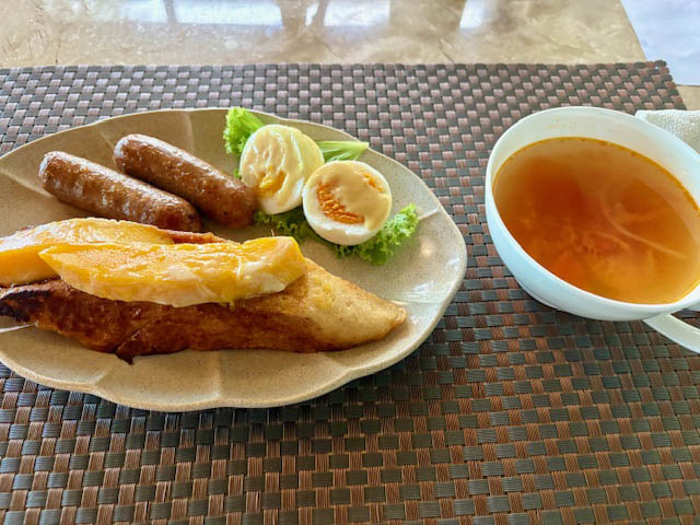朝ごはんは人気のマンゴーのせフレンチトースト。停電の困難があっても、甘いもので少しだけ幸せを取り戻します。