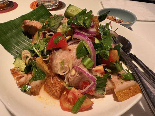 味は文句なしに美味しい。ただし、値段はしっかりお高い。カリカリ豚肉の入ったサラダ。何度も訪れているのに、初めて注文しましたが、日本のきゅうりが使われていたりして、ちょっと不思議な感じ。でも美味しい。スパイスも効いていて、おすすめできる味です。