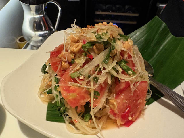 ソムタムは、「スパイシーにしないで」と言い忘れたので、しっかり辛く仕上がってきました。昔だったら喜び勇んで食べていたのですが、去年からの唐辛子アレルギー持ちとしては要注意案件。奥さんだけに担当してもらうのも、夫婦で半分この観点からするとよろしくないので、唐辛子を几帳面に弾きつつ、美味しくいただきました。アレルギー反応も出ず。油断は禁物です。