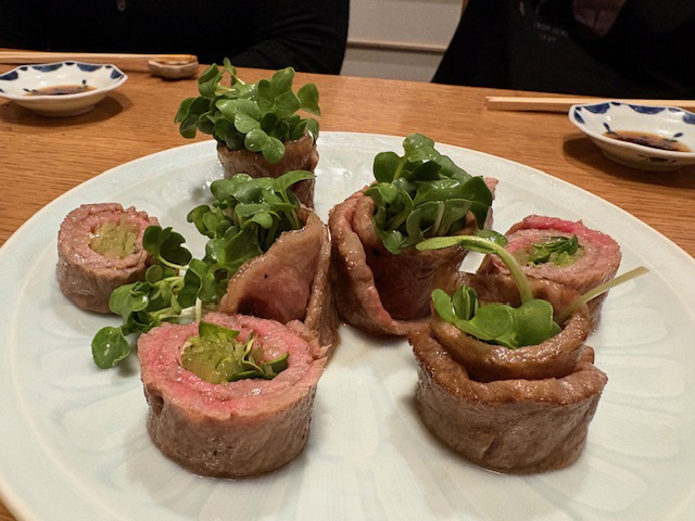 当日の電話で夜の予約が取れた肉割烹のお店に感謝。旅のタイミングと運が重なった、ありがたい一夜でした。奥さんの「行きたい」という長年の希望を叶えられたことも、小さな幸せです。