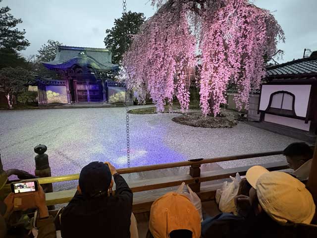 ただ、境内に入ると、しだれ桜が美しかったです。べつにプロジェクションマッピングはなくても良かった感じですが、他の外国人はわざわざプロジェクションマッピング狙いで来ていたので、これはこれでお寺の思うツボ。でも、本当は歴史のこととかきちんと学んで、自己脳内プロジェクションマッピングで夜景を楽しんだほうが、より高尚な楽しみ方なんだと思うんですよね。