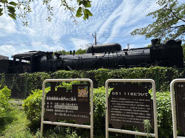 この公園に展示してあるのは、D51。うどん屋さんのメニューにもデゴイチうどんがあったりと、ここに来て昭和の記憶がドドドと持ち上がってきました。