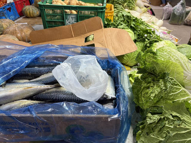 コリアン野菜を売っている八百屋ではサバも。韓国から来ているみたいで、冷凍になっているのは良いのですが、野菜の横の気温28度のフィリピンの空気に触れつつ自然解凍中。解答し切る前に買っておかないとイキグサレたサバを食べることになりそうで怖いですね。