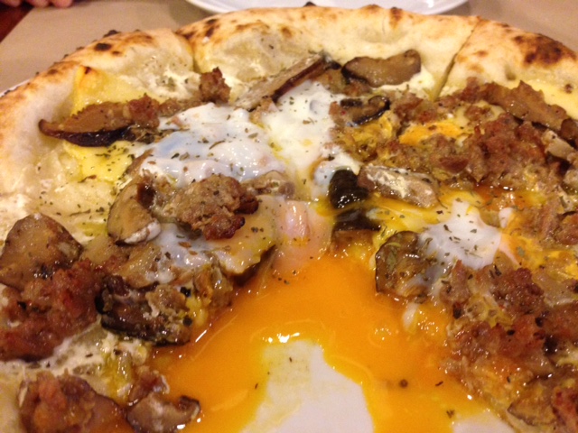 マニラで気になっていたサルセドヴィレッジのGino’s Brick Oven Pizzaへ。並ぶピザ屋ですが、おやつの時間に雨の中訪ねていったので、すぐに店に入れました。自家製ソーセージに生卵とチーズという、ベストセラーのSMEGピザを食す。