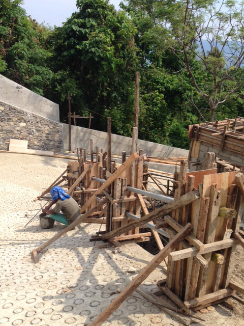 - スタンダード棟、屋根下の梁にコンクリ流し。