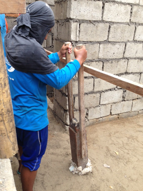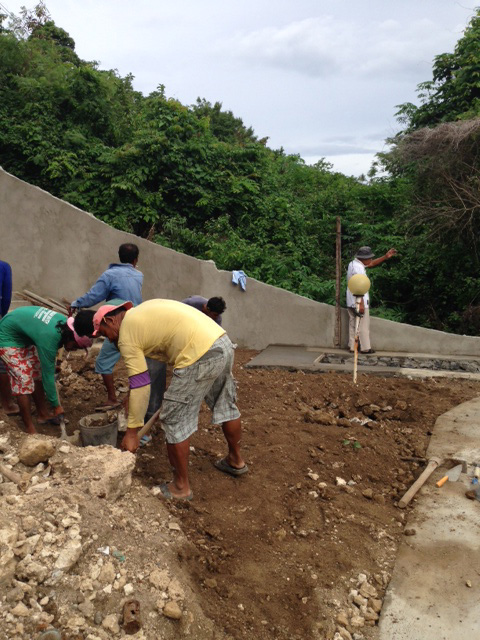 - スタンダード棟の1階客室。土を入れて所定の高さで固めます。