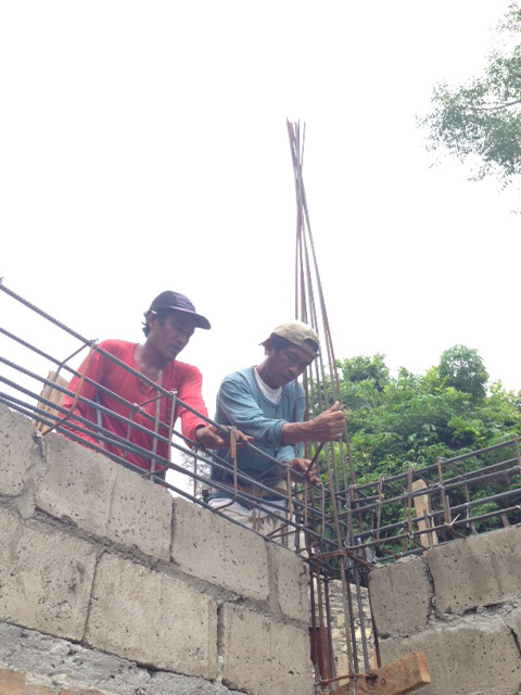 - 梁の鉄筋組み。追わったら、2階のフロア部分の鉄筋へ。