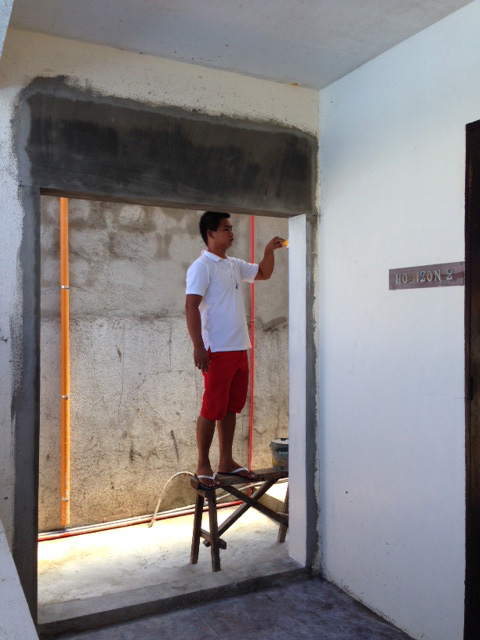 朝から暑くなりそうな気配のアニラオです。リゾートの背後から太陽が上がってくるので、雨季の今は、朝の時間に丁度目の前の海に虹がかかることがあります。