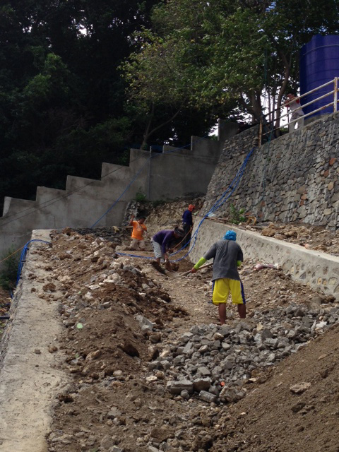 - 古い水タンク撤去完了。掘り進めて、駐車場からの降り口とします。