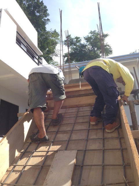 - スタンダード棟中央階段の仕上げ、あと少し。