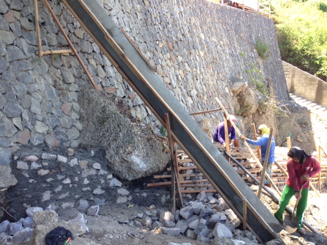 リゾート中央の段差の急な階段をスロープに変えています。