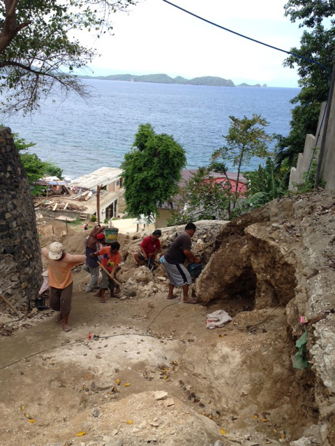 - 駐車場から降りてくる道路のカーブ部分。狭い階段だけ残して、上は土を入れてスタッフルーム用の土地に。
