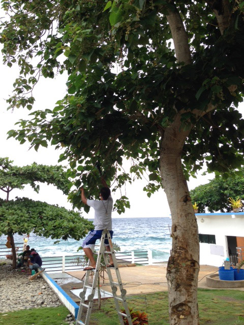 朝から不穏な雲行きのアニラオです。ボート出発前には雨。朝からスコールです。ダイバーは潜ってしまうからいいものの、スノーケラーも乗るのにこれでは寒いと思っていたら、晴れました。